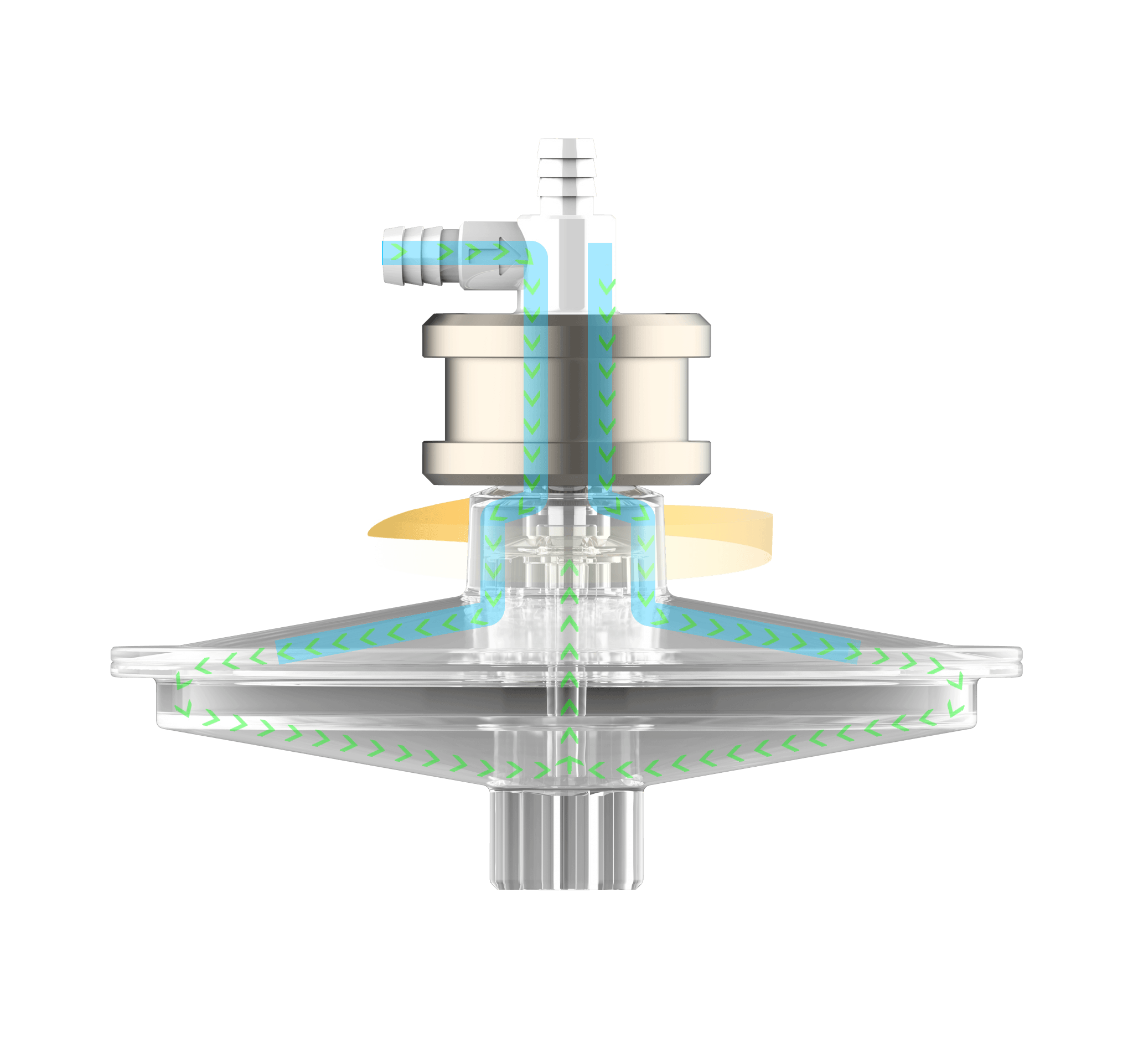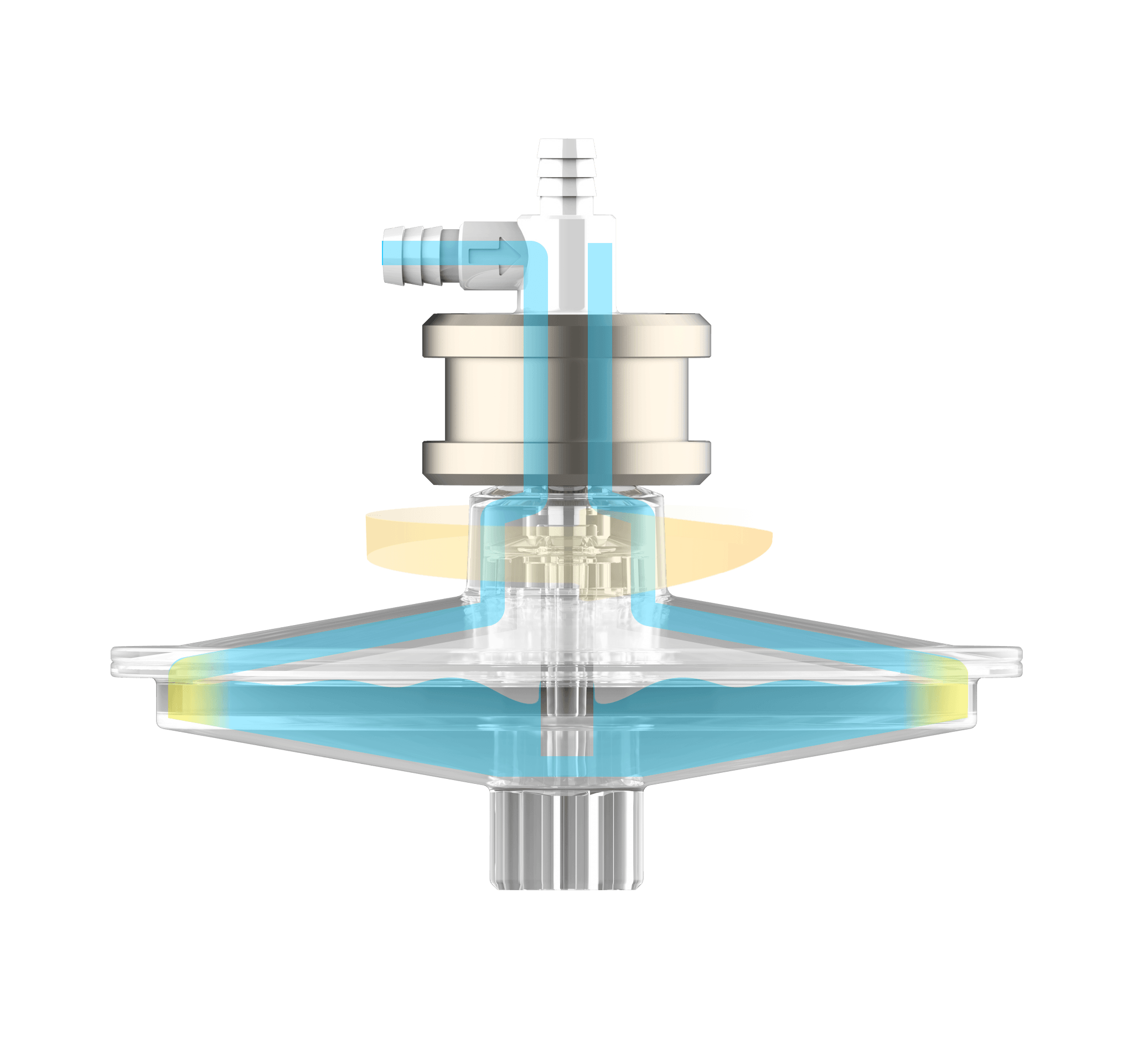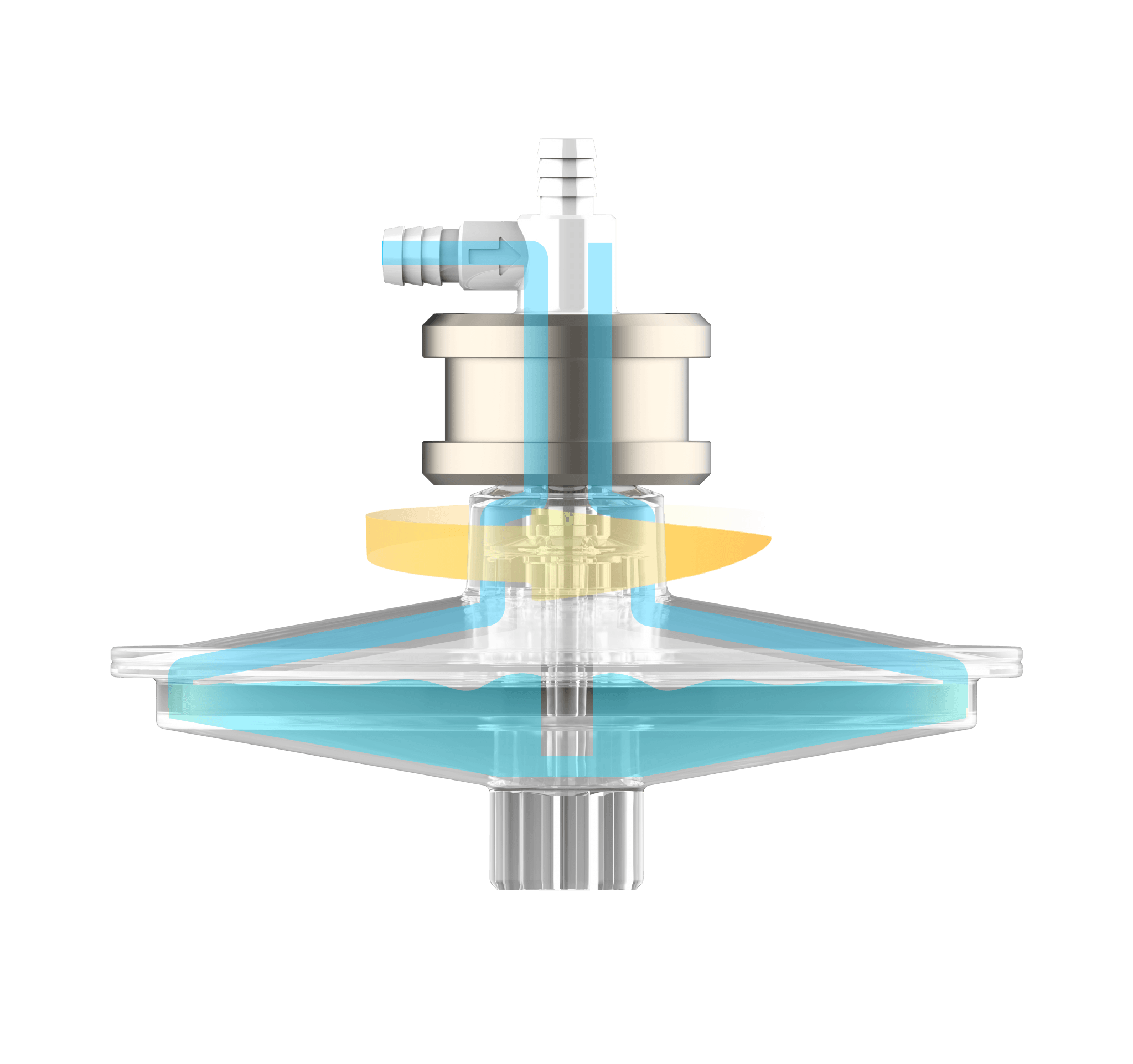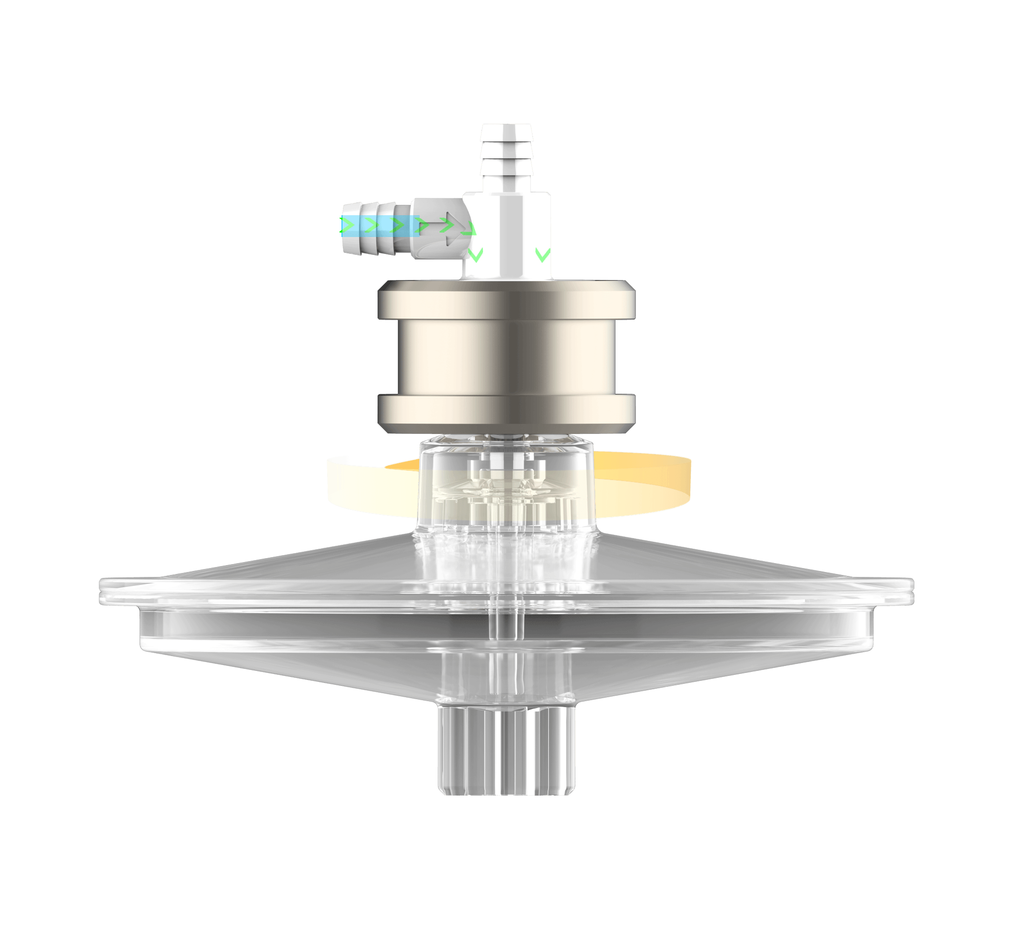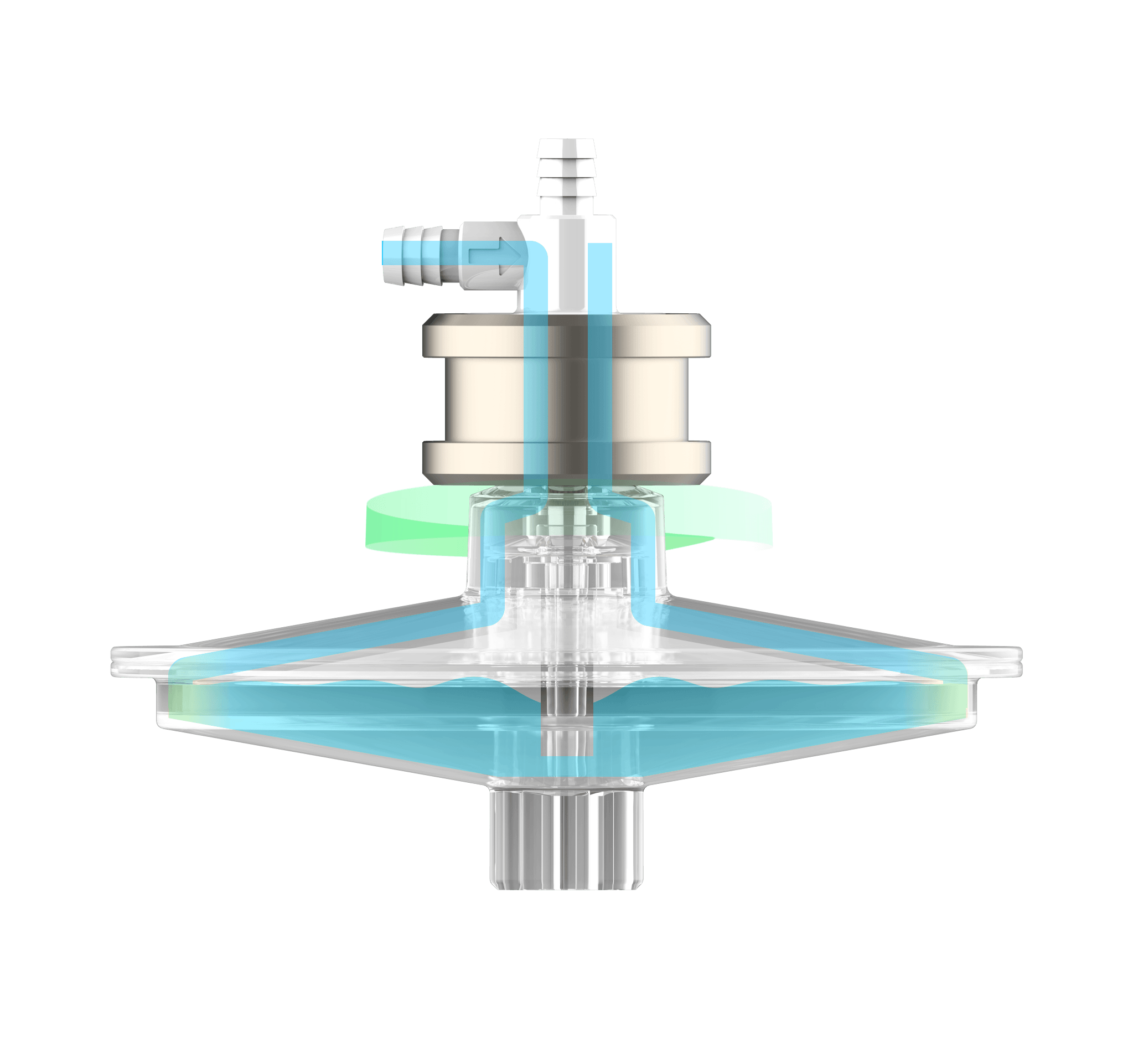 细胞液通过蠕动泵持续流过离心杯,在离心力的作用下,细胞被截留在杯内,原始培养基排入废液袋,从而实现大体积细胞液的连续处理。