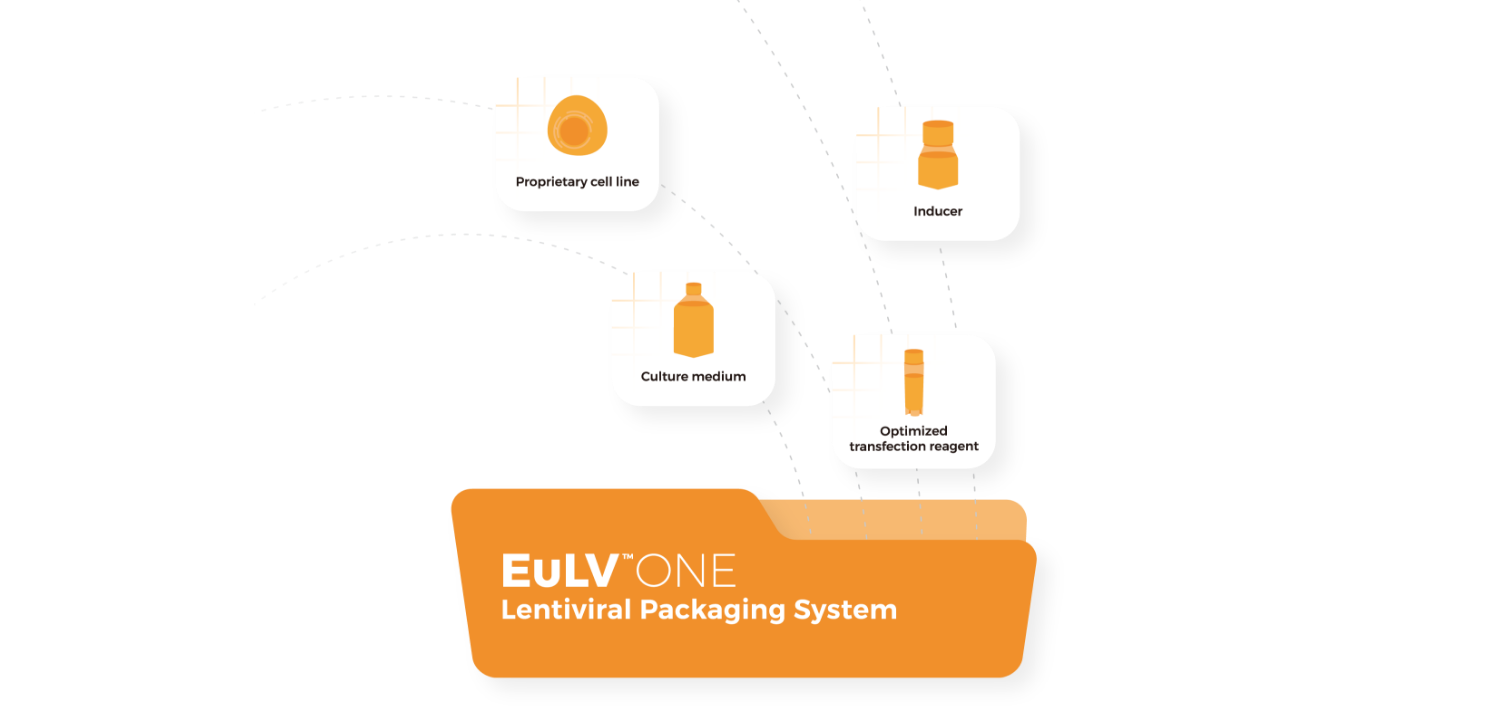 The EuLV ONE™ Lentiviral Packaging System is designed for single-plasmid transient transfection using the EuLV ONE™ packaging cells. This all-in-one solution includes a proprietary cell line, optimized transfection reagent, culture medium, and inducer, all tailored to deliver high viral yields, ease of use, and flexibility.