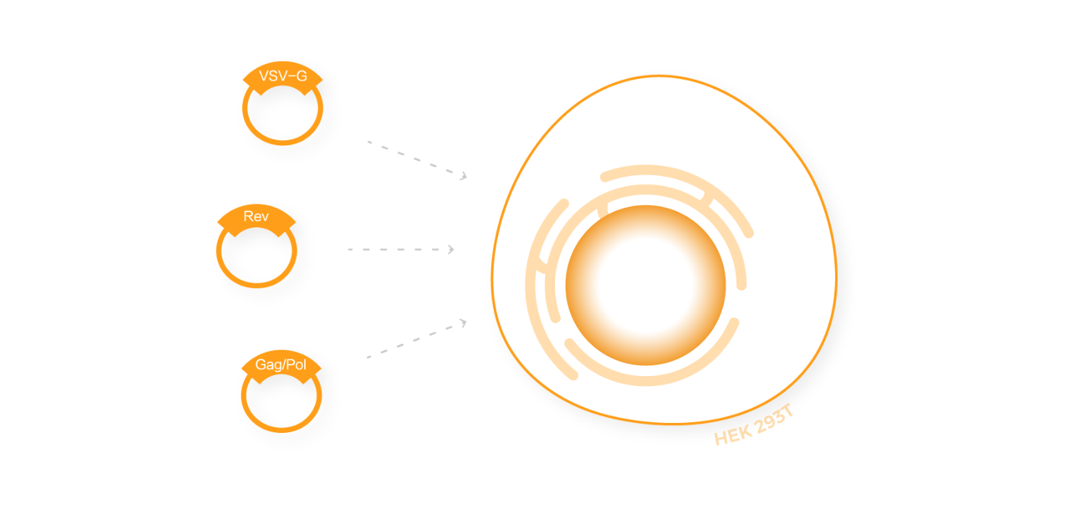 EurekaBio has developed EuLV ONE™ Packaging Cell Line, a proprietary 293T-derived cell line that stably integrates the key lentiviral packaging elements—Rev, Gag/Pol, and VSV-G—into the genome of 293T cells. This clonal, suspension-adapted cell line is engineered for fast growth, high transfection efficiency, and robust lentiviral packaging.